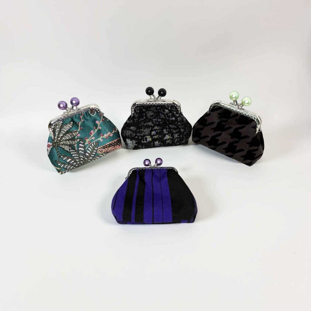 Aus alten Krawatten entstehen kleine Cliptäschchen, die für unterschiedliche Zwecke genutzt werden können, z.B. als Geldbörse oder – wie ich sie selbst benutze – als Aufbewahrung für Schmuck. Die Täschchen fertige ich auch aus normalen, robusten Dekostoffen.