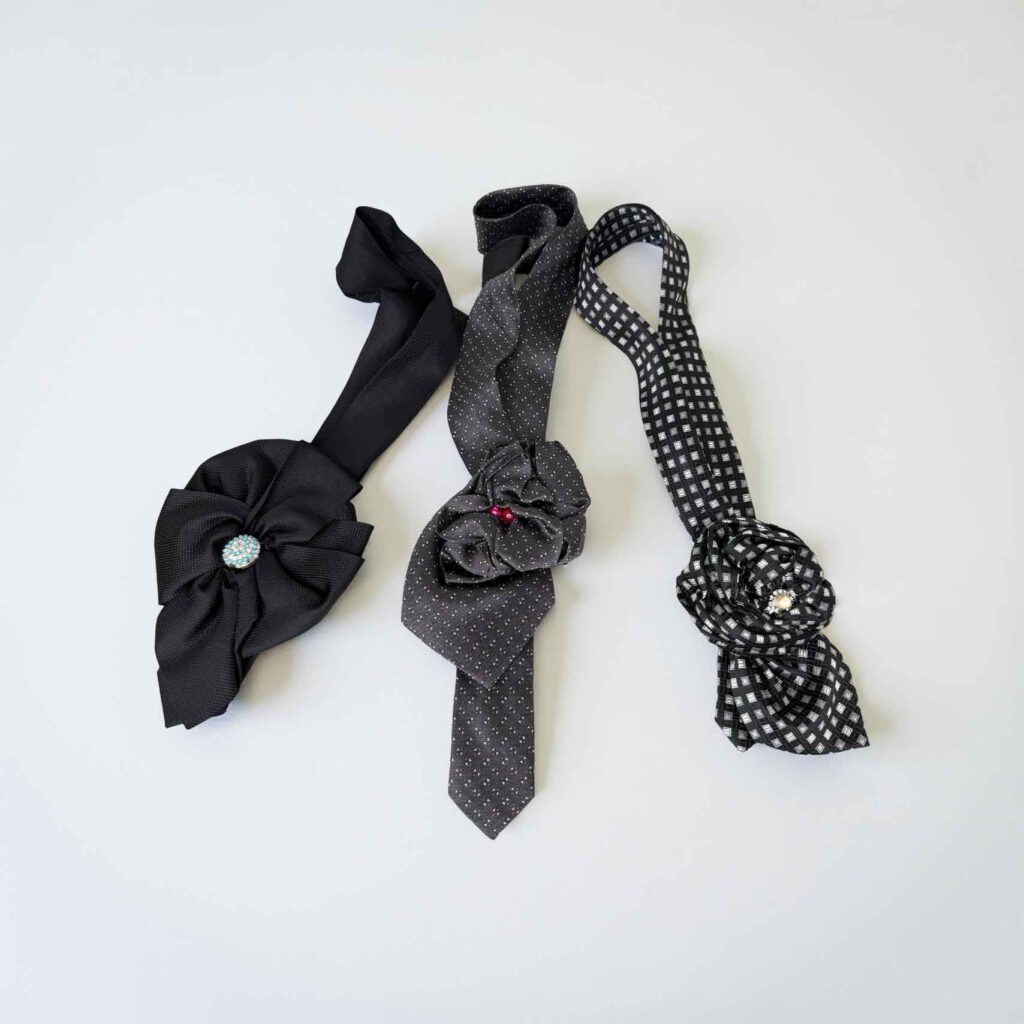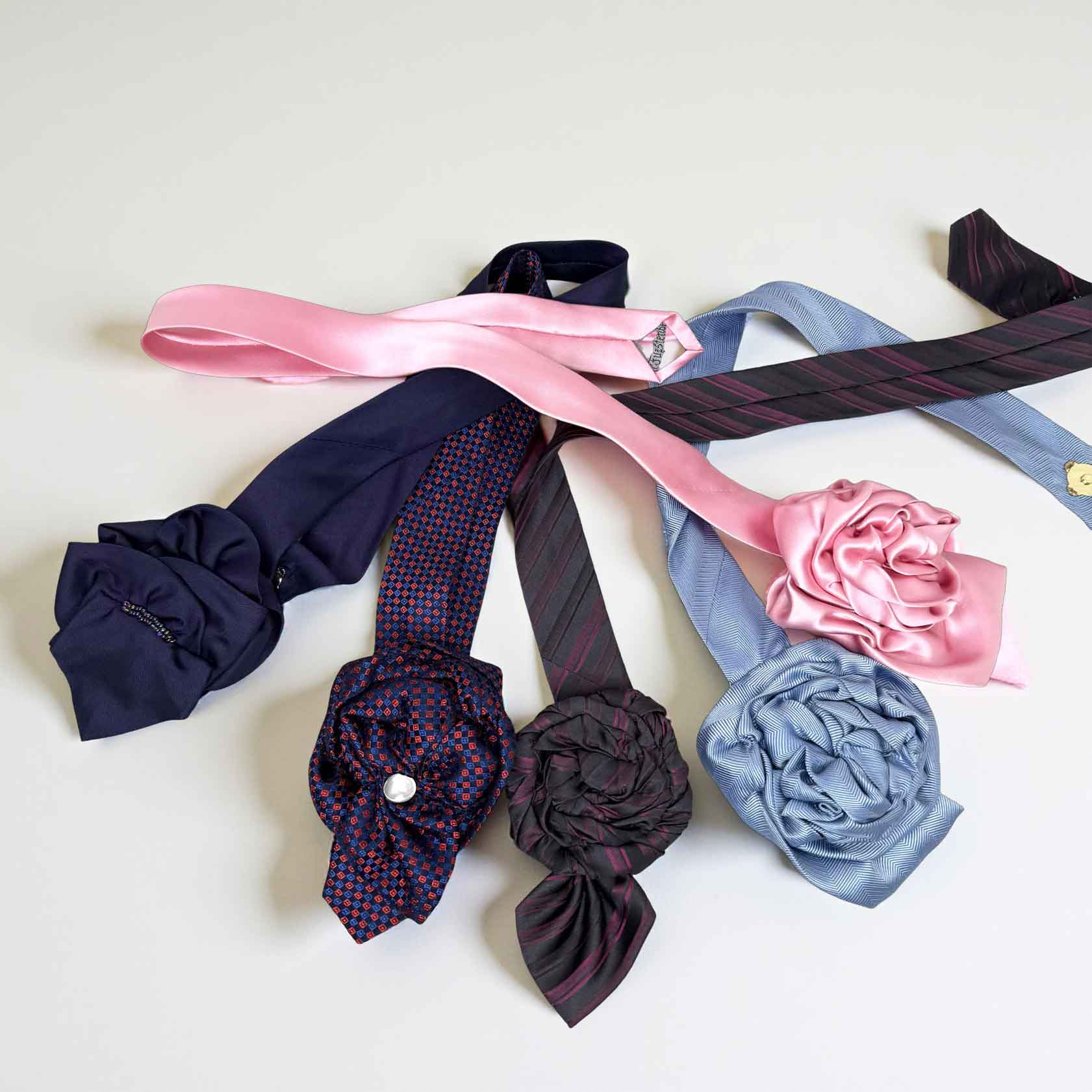 Ebenfalls aus Krawatten designe ich einzigartige Krawattencolliers. Immer ein Unikat, immer besonders