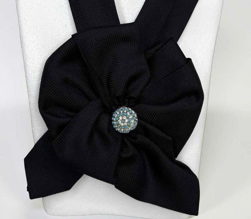 Krawattencollier schwarz mit Glitzerknopf